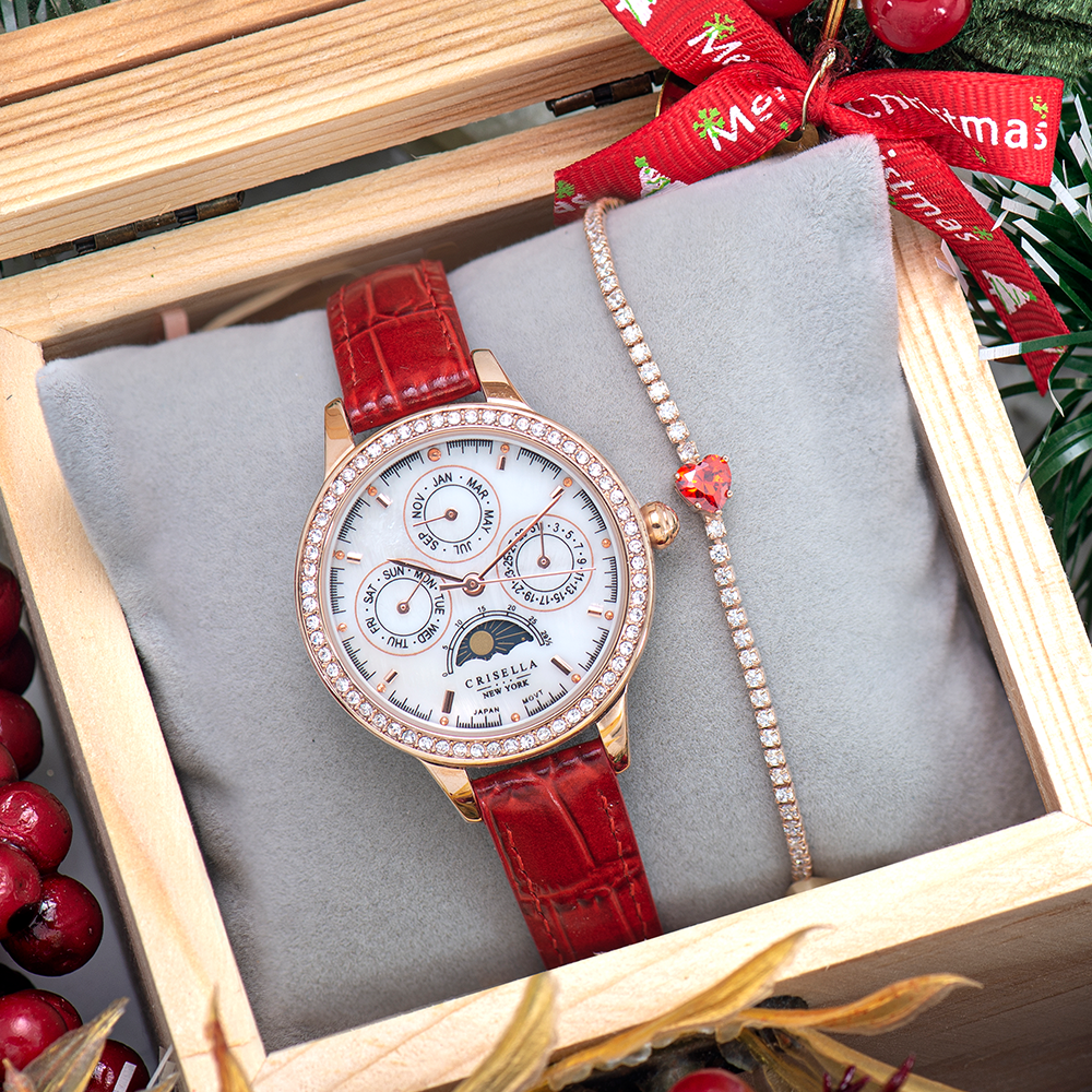 經典時尚鋯石石英手錶配LOVE手鏈套裝