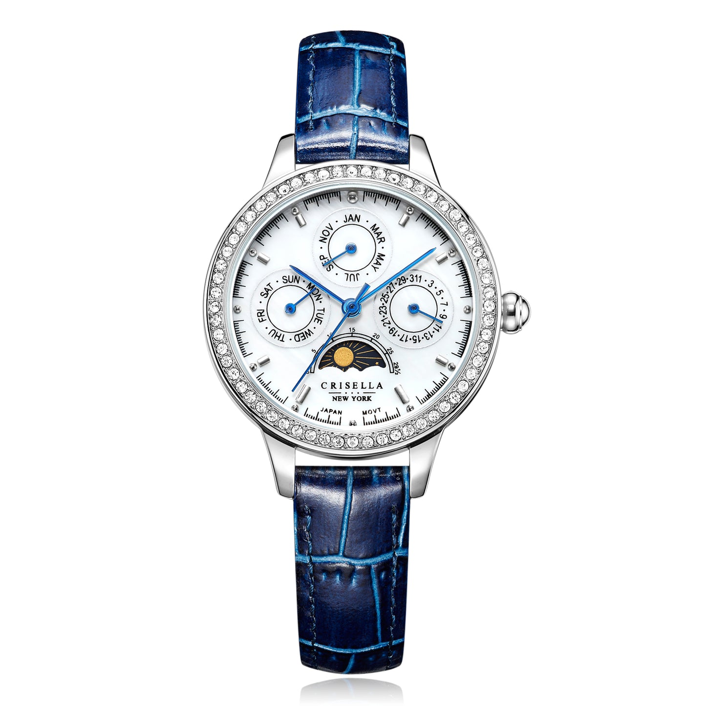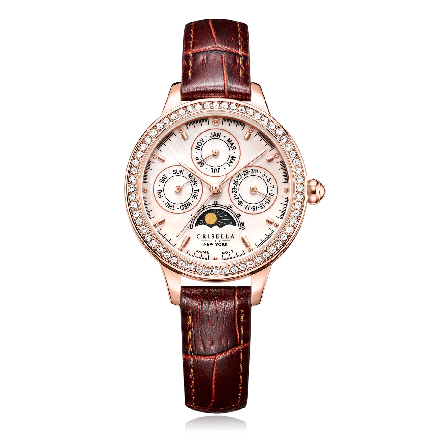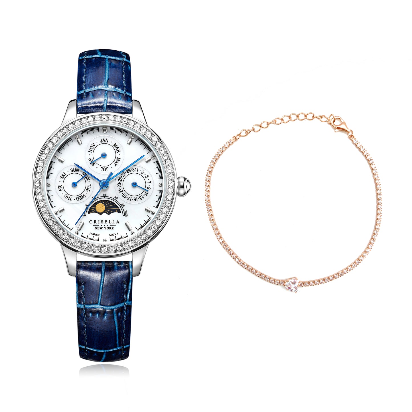 優雅閃爍鋯石金屬石英手錶配簡約手鏈手鐲套裝